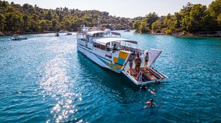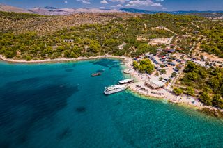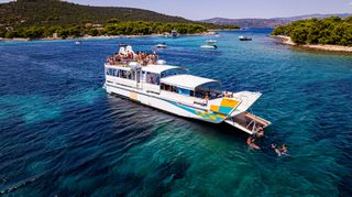 Set sail from Split and venture to our first destination – a hidden bay on Ciovo island. The clean blue water and surrounding green forests will take your breath away. Explore the sea with included snorkeling equipment and then take a break in the outdoor restoraunt where our lunch takes place. You can choose between grilled chicken, fish or vegetarian option. Top everything with homemade olive oil.