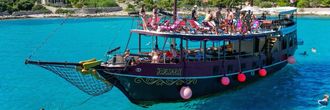 Meet your guide in the middle of the Riva promenade in Split. Climb aboard the pirate ship and get settled before setting sail. First, stop at Fumija Bay. Borrow a snorkel and mask and jump into the water. Spend an hour swimming around.