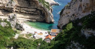 The Blue Cave on Bisevo Island is one of Croatia's most famous natural wonders. Known for its mesmerizing blue glow, created by sunlight reflecting off the white seabed through an underwater opening, the cave offers an unforgettable experience. Visitors can only enter via small boats operated by licensed guides.